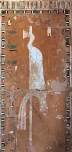 - ↑ Die Original-Hieroglyphe der Standarte des Imiut-Balgs (R60) ist zurzeit im Zeichensatz von Wikipedia nicht darstellbar.