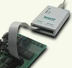 Die In-System-Programmierung (ISP), auch englisch In-circuit serial programming (ICSP), ermöglicht das Programmieren einer logischen Schaltung direkt im Einsatzsystem. Dazu wird meist eine einfache serielle Verbindung genutzt, z. B. JTAG oder SPI.[1] Der Vorteil der In-System-Programmierung ist, dass der zu programmierende Baustein sonst aus dem Zielsystem entfernt werden müsste oder vor der Montage ein weiterer Produktionsschritt zur Programmierung eingeführt werden müsste. Hintergrund: Im Zuge der Bauteileminiaturisierung werden zunehmend Chipgehäuse verwendet, die nur gelötet, aber nicht (einfach) gesteckt werden können. Sie werden so weniger mechanisch belastet, und der gesamte Programmiervorgang ist schneller und weniger potenziellen Fehlerquellen ausgesetzt.