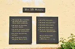 Ein starker biblischer Bezug wird über die gebotsähnlichen Formulierungen geschaffen. Moses erhält die Gebote von Gott für die Israeliten nach ihrem Auszug aus der ägyptischen Knechtschaft. Das erste Gebote, Ich bin dein Gott, ist eine Aussage; die übrigen neun sind gleich viele wie die Imperative im Gedicht. Der Titel des Gedichts lässt ebenfalls an das Buch Exodus denken.
