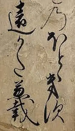 - ↑ 『はなぞちる かからむとての 色香かな』 – etwa „Die Blüten sind abgefallen, aber die ehemalige Farbe der Blüten ist duftend.“
