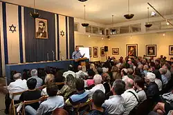 „Heute können Sie den historischen Saal besichtigen, in dem Ben Gurion die Gründung des Staates Israel erklärt hat. Die meisten Exponate sind original, einige sind detailgetreu rekonstruiert und führen den Besucher zurück zu diesem unglaublichen Ereignis. Die Namen derer, die an der Zeremonie von 1948 teilgenommen haben, stehen auf dem Podium und den Stühlen; Herzls Porträt hängt über der Bühne, flankiert von zwei langen israelischen Flaggen. Die meisten der damals ausgestellten Bilder, die seit dem Tag der Erklärung des Staates zur Sammlung des Museums von Tel Aviv gehören, sind noch immer an den Wänden zu sehen. In der Ecke befinden sich verschiedene Gegenstände, die mit der Zeremonie verbunden sind: Dokumente, Einladungen, Aufnahme- und Sendeanlagen, Memos und mehr. Besucher können sich die Originalaufnahme der Zeremonie anhören und einen 16-minütigen Film ansehen, der die Ereignisse der Zeit und die Geschichte des Gebäudes beschreibt.“[18]