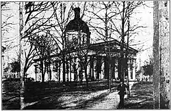Das Statehouse wurde aus blauem Kalkstein gebaut und hatte 2 Geschosse. Der Gouverneur und der oberste Gerichtshof belegten das Erdgeschoss. Repräsentantenhaus und Senat befanden sich im Obergeschoss, jeweils in einem eigenen Flügel. Das Gebäude sah viele große Ereignisse in seiner Geschichte, einschließlich der Aufbahrung von Abraham Lincoln vom 30. April bis zum 1. Mai 1865. Das Gebäude war nach seiner Fertigstellung beliebt, aber in den 1860er Jahren kam sein Greek-Revival-Baustil aus der Mode und das Gebäude begann zu verfallen. Das Kalksteinfundament begann zu versagen und viele befürchteten einen kompletten Einsturz des Gebäudes. Im Jahr 1867 stürzte die Decke des Repräsentantenhauses ein. 1873 wurde eine Debatte über die Rettung des Gebäudes geführt, jedoch ohne Lösung des Problems. Zu der Zeit, als Gouverneur James Williams ins Amt gewählt wurde, war das Gebäude zum Abriss verurteilt. Es wurde schließlich 1877 abgerissen.[14]