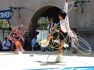 - ↑ a b c d Dennis Zotigh: History of the modern Hoop Dance. In: Indian Country Today. 30. Mai 2007, abgerufen am 20. April 2009.