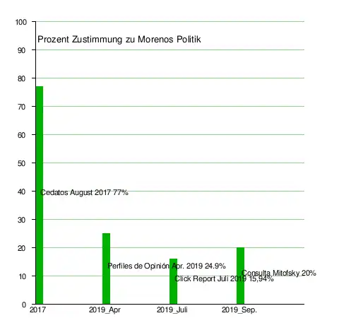 - ↑ Perfiles de Opinión: Gestión de Moreno cae al 24,18%. In: Confirmado.net. 16. Mai 2019, abgerufen am 13. Oktober 2019 (spanisch).