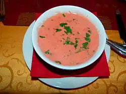 Für einen großen Teil der Inder stellt Fleisch jedoch generell eine untergeordnete Rolle auf dem täglichen Speiseplan dar, häufig nur als kleine Beilage. Als Eiweißlieferanten dienen in der indischen Küche hauptsächlich Milchprodukte und Hülsenfrüchte wie etwa geschälte rote Linsen, Strauch- oder auch Kichererbsen.[2][3] Außer bei ausschließlich vegetarischer Ernährung ist Hühnerfleisch über alle Kasten- und Religionsgrenzen hinweg beliebt.