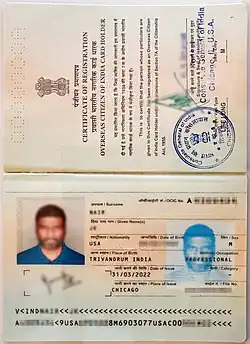 Art. 9 der indischen Verfassung erlaubt keine doppelte Staatsbürgerschaft, auch nicht beim Erwerb einer anderen Staatsbürgerschaft durch Geburt, wie es etwa bei einer Geburt in den Vereinigten Staaten oder Kanada der Fall ist. Um Mitgliedern der indischen Diaspora dennoch bestimmte Rechte einzuräumen, wurde mit Wirkung ab dem 9. Januar 2006 die Möglichkeit geschaffen, sich als Personen indischer Herkunft (PIO) registrieren zu lassen. Bei einer Reise nach Indien musste im ausländischen Reisepass ein „U“-Visumstempel enthalten sein. Dieses Erfordernis wurde am 9. Januar 2015 abgeschafft und OCI-Inhaber müssen bei einer Ein- und Ausreise lediglich einen gültigen ausländischen Reisepass mitführen. Im Zuge der COVID-19-Pandemie wurde im Zeitraum von März bis zum 15. April 2020 die visumfreie Einreise ausgesetzt. Am 4. März 2021 wurden die Rechte von OCI-Inhabern eingeschränkt. Bei Reisen in „geschützte Gebiete“ (vornehmlich in Nordostindien) oder in „Sperrgebiete“ (beispielsweise in das indische Unionsterritorium Andamanen und Nikobaren) muss nun vorher eine Genehmigung beantragt werden. Sollten sich OCI-Inhaber dauerhaft in Indien niederlassen, so müssen sie jede Änderung ihrer ständigen Wohnadresse oder ihres Berufs dem „Foreigners Regional Registration Officer“ (FRRO) per E-Mail mitteilen.