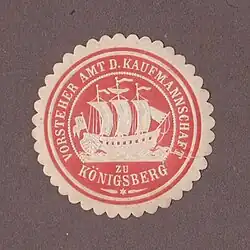 In Königsberg bestand das Vorsteheramt der Kaufmannschaft Königsberg als Handelskammer. Die Regierung in Königsberg veröffentlichte das Statut der Kaufmannschaft am 25. April 1825[1]. Mit dem Gesetz über die Handelskammern vom 24. Februar 1870[2] wurden die Handelskammer in Preußen neu organisiert. In Königsberg wurde dies mit dem Statut für die Kaufmannschaft zu Königsberg i.Pr. umgesetzt. Es bestand damit ab dem 1. Juli 1871 aus 15 Mitgliedern, die je auf drei Jahre gewählt wurden.[3]