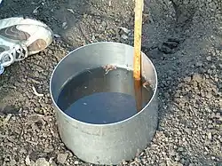 Die Messung der potentiellen Infiltration geschieht mittels sog. Infiltrometer. Dabei handelt es sich meist um einen Ring mit einem definierten Querschnitt, welcher in den Boden eingestochen wird und dann bis zu einer ebenfalls definierten Höhe mit Wasser gefüllt wird.