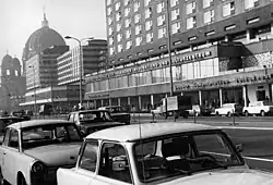 Nach 1980 wurde es ungewollt zum Transporteur der Ideen von Solidarność.[4] Das Haus der tschechoslowakischen Kultur befand sich erst am Bahnhof Friedrichstraße, bevor es 1979 in die neu erbaute Botschaft der CSSR in Ost-Berlin umzog. Im Jahr 1968 trat dort Wolf Biermann auf und eine mit dem Prager Frühling sympathisierende deutschsprachige Zeitung war erhältlich.[5] Das Kultur- und Informationszentrum der ČSSR befand sich in der Leipziger Straße 60 (später Ort der Galerie von Julia Stoschek). Ebenso war Bulgarien seit 1962 (bis heute) in Berlin vertreten;[6] Ungarns Kulturzentrum hatte in der Karl-Liebknecht-Straße 9 seit 1973 ein neues Haus, wo auch ein Reisebüro für Ungarn[7] seinen Sitz hatte. Ein Haus der Sowjetischen Wissenschaft und Kultur folgte erst 1984.