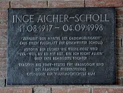 - 2005 wurde die Inge-Aicher-Scholl-Realschule in Neu-Ulm/Pfuhl nach ihr benannt.[4]