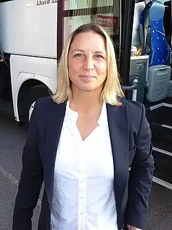 Inka Grings (* 31. Oktober 1978 in Düsseldorf) ist eine ehemalige deutsche Fußballspielerin und heutige -trainerin. Die Stürmerin spielte 16 Jahre in der Frauen-Bundesliga für den FCR 2001 Duisburg. Mit der deutschen Nationalmannschaft gewann sie zwei Europameister-Titel und wurde in beiden Turnieren zudem Torschützenkönigin. Als erste Trainerin übernahm sie mit dem Regionalligisten SV Straelen eine Herren-Mannschaft der obersten vier Fußballligen in Deutschland. Sie war außerdem Cheftrainerin des Schweizer Frauen-Nationalteams.[1][2]