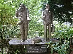 Statuen bei Trago Mills (in der Nähe von Liskeard, Cornwall), die sich über die Steuerbehörde lustig machen.