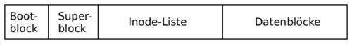 • Der Dateisystemtreiber liest den Superblock aus. Dadurch erfährt er die Startposition der Inodes und deren Länge. Somit kann nun jeder beliebige Inode gefunden und gelesen werden.