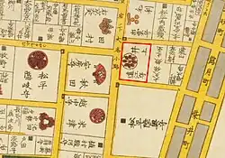 - ↑ Ausschnitt aus der Stadtteilkarte „Atago-shita“ von ca. 1850.