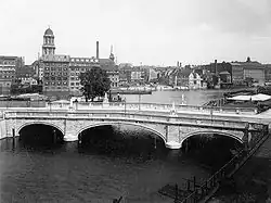 - Senatshomepage mit 3 historischen Fotos der Inselbrücke: 1911 (Holzbrücke), 1916 (Steinbrücke, komplett mit Schmuck), 1925 (dito)