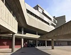 Das Gebäude ist vielgliedrig und besitzt keine einheitliche Grundform. Die Baumassen sind gestaffelt und steigen vom Hindenburgdamm in mehreren Stufen an bis zum höchsten Gebäudeteil, einer fünfgeschossigen Zeile parallel zur Krahmerstraße. Die Grundrissfigur basiert auf einem Doppel-Y oder einem gestreckten X. Auditorium und Kurssaal wurden als eigene Gebäudeteile ausgebildet und sind der mittleren Zeile westlich vorgelagert. Den östlichen Abschuss bildet der breite Bauteil der Nährbodenküche. Eine Besonderheit ist die Erschließung über eine Rampe, die von der Krahmerstraße zu einer außenliegenden Verteilerebene führt. Alle Oberflächen sind in brettergeschaltem Sichtbeton ausgeführt. Die Struktur der schmalen Schalungsbretter ist an den Betonoberflächen abgezeichnet. Ein weiteres Merkmal des Gebäudes sind die von außen gut erkennbaren Versorgungsschächte, die wie Türme über die Dachkanten des Baus hinausragen.