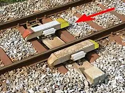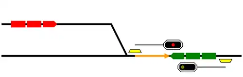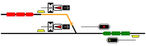 - ↑ Bei beispielsweise 80 km/h Einfahrgeschwindigkeit beträgt der Durchrutschweg nur mindestens 60 Meter. Bei Gefälle kommt ein Zuschlag dazu. (Ausführungsbestimmungen zur Eisenbahnverordnung (AB-EBV) UVEK, 1. November 2024 (PDF; 9 MB). AB 39.3.a Fahrwegsteuerung und -sicherung, Ziffer 4.3.1)