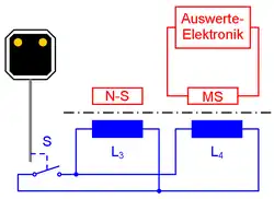 An den Triebfahrzeugen und Steuerwagen war unten in der Gleismitte ein Erregermagnet sowie links und rechts je ein Empfangsmagnet angebracht, wobei der in Fahrtrichtung links befindliche Empfangsmagnet jeweils eingeschaltet war. In der ursprünglichen Version waren die Erregermagnete als von der Fahrzeugbatterie gespeiste Elektromagnete ausgebildet.