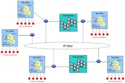Jede mit Iltis ausgestattete Betriebs­leit­zentrale steuert einen bestimmten Teil des Bahnnetzes. Zu den benachbarten Betriebsleitzentralen meldet es lediglich die Zugstandorte.