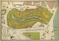 Das Vorbereitungskomitee bestand aus den beiden Initiatoren Friedrich Jürgens und Johann Theodor Ohlendorff (Sohn von Johann Heinrich Ohlendorff) sowie namhaften Hamburger Kaufleuten und Senatoren wie Charles Ami de Chapeaurouge und Carl Hermann Merck.[1] Als Ausstellungsgelände wurde vom Hamburger Senat ein 14 Hektar großer Abschnitt der ehemaligen Wallanlagen zwischen Millerntor und Elbe (heute Alter Elbpark und Stintfang) zur Verfügung gestellt. Die gärtnerische Planung oblag Jürgens selbst, die Ausstellungshallen entwarf Martin Haller. Aussteller aus 11 Nationen beteiligten sich, auch wenn die Ausstellung selbst nur 11 Tage dauerte.[2]