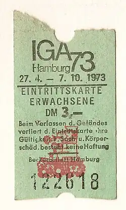 Die Internationale Gartenbauausstellung 1973 (IGA) war zugleich eine Bundesgartenschau. Sie fand vom 27. April bis zum 7. Oktober 1973 in Hamburg statt.[1]
