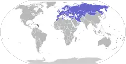 Afghanistan, Albanien, Armenien, Aserbaidschan, Belgien, Bosnien-Herzegowina, Bulgarien, Dänemark, Deutschland, Estland, Finnland, Frankreich, Georgien, Griechenland, Großbritannien, Iran, Irland, Island, Italien, Jordanien, Kasachstan, Kirgisistan, Kroatien, Lettland, Libanon, Litauen, Luxemburg, Malta, Marokko, Mazedonien, Moldawien, Mongolei, Montenegro, Niederlande, Norwegen, Österreich, Oman, Pakistan, Polen, Portugal, Rumänien, Russland, Schweden, Schweiz, Serbien, Slowenien, Slowakei, Spanien, Syrien, Tadschikistan, Tschechien, Tunesien, Turkmenistan, Türkei, Ukraine, Ungarn, Usbekistan, Belarus, Zypern. (Stand: 1. Februar 2024)[10]