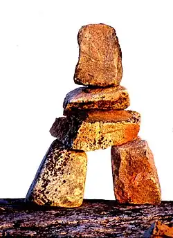 Erwähnt seien auch die vielgestaltigen, in großer Zahl noch aus der Thule-Zeit stammenden Inuksuit, Landmarken „wie ein Mensch“, die zum Teil eine beeindruckende künstlerische Ausformung erfuhren. Derartige Steinmännchen sind auch aus der inneren Mongolei, Tibet und Sibirien bekannt und dienten Vorbeiziehenden nicht nur als Wegmarken, sondern gelegentlich auch als Kultobjekte zur Opferung verbunden mit dem Wunsch um erfolgreiche Reisen oder Jagden.