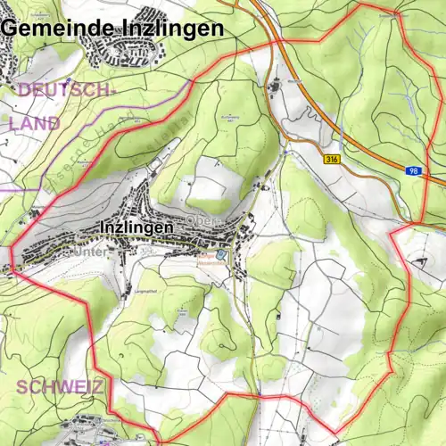 | Lage der Gemeinde Inzlingen im Landkreis Lörrach | ||