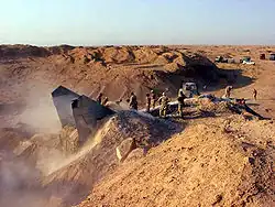 Entdeckung eines eingegrabenen irakischen Kampfflugzeuges vom Typ MiG-25 in al-Taqqadum im August 2003