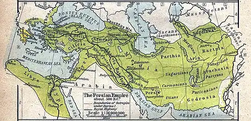 Iran (persisch ايران, DMG Īrān, , amtlich seit 1979 Islamische Republik Iran; auch der Iran;[6] historisch als Exonym bis 1935 und teils darüber hinaus auch Persien) ist ein Land in Vorderasien. Das Land wird im Norden vom Kaspischen Meer und im Süden durch den Persischen Golf begrenzt.