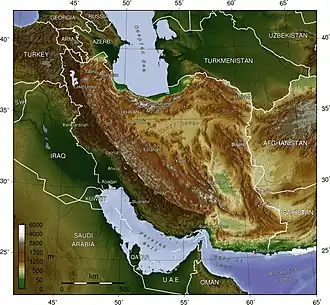 Das Iranische Hochland, auch Persisches Plateau[1][2] (persisch فلات ایران Falāt-e Īrān), iranisches Plateau[3] und ähnlich genannt, ist eine gebirgige Region in Asien, zwischen dem Zweistromland im Westen und der Hindukuschregion im Osten. Der größte Teil des Hochlands befindet sich in Iran.