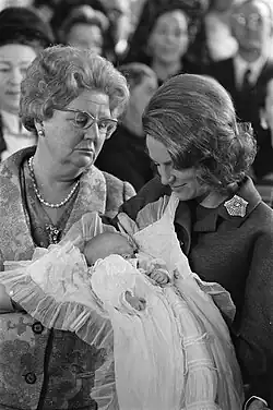 Prinzessin Irene mit ihrer Mutter Königin Juliana bei der Taufe von Prinz Carlos am 10. Februar 1970 - Luisa Irene Constance Anna Maria (* 10. Mai 2012 in Den Haag)