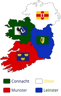 Verantwortlich für die Organisation von Rugby Union in Irland ist die Irish Rugby Football Union (IRFU), die 1879 durch den Zusammenschluss zweier Verbände entstand.[5] 1886 gründete die IRFU zusammen mit der Scottish Rugby Union (SRU) und der Welsh Rugby Union (WRU) das International Rugby Football Board (IRFB; heute World Rugby).[6] Außerdem trat die IRFU 1999 dem europäischen Kontinentalverband FIRA-AER (heute Rugby Europe) bei.[7] Die IRFU besteht aus den vier Provinzverbänden Connacht Rugby, Leinster Rugby, Munster Rugby und Ulster Rugby, die mit jeweils eigenen Mannschaften an der internationalen Liga United Rugby Championship teilnehmen, an der auch Teams aus Italien, Schottland, Südafrika und Wales beteiligt sind. Darunter angesiedelt ist die All-Ireland League mit 50 Vereinen aus ganz Irland. Der United Rugby Championship übergeordnet sind die zusammen mit Mannschaften aus England, Frankreich, Italien, Schottland und Wales ausgetragenen internationalen Pokalwettbewerbe European Rugby Champions Cup und EPCR Challenge Cup.