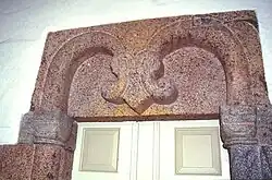 Sigmund Oehrl[1] sieht in dem Koppel ein Element der Fesselungsikonographie und hält es für ein apotropäisches Symbol. Dies bezeugen Positionierungen über den Portalen der Kirchen von Gassum, Grensten, Hem, Kousted, Lem (sh. Weblink), Mørke und Tvede alle (ausschließlich) in Nordjütland, wo die auch båndsløjfe genannte Ornamentik die übliche apotropäische Maske ersetzen.
