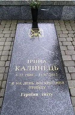 Iryna Kalynez starb am 31. Juli 2012 im Alter von 71 Jahren nach langer Krankheit[1][2] und wurde in Lwiw auf dem Lytschakiwski-Friedhof bestattet.