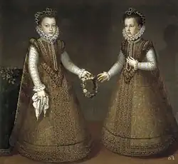 Infanta Isabella Clara Eugenia war die Tochter des spanischen Königs Philipp II. von Habsburg, Sohn des Kaisers Karl V., und der Elisabeth von Valois. Bei der Geburt kam es für die Mutter zu Komplikationen, sie schwebte mehrere Tage zwischen Leben und Tod. Philipp II., der in zeitgenössischen Quellen als gefühlskalter Monarch beschrieben wird, äußerte nach der Entbindung, dass er sich über das Mädchen mehr freue als über einen männlichen Thronfolger. Die Infantin verlor ihre Mutter jedoch schon im Alter von zwei Jahren und wuchs mit ihrer jüngeren Schwester Katharina Michaela am spanischen Königshof ihres Vaters unter der Obhut der Amme Maria de Messa auf. Der Vater ging nach dem frühen Tod seiner dritten Frau 1570 eine weitere dynastische Verbindung mit seiner Nichte Anna von Österreich ein, der Tochter seiner Schwester Maria von Spanien aus ihrer Ehe mit ihrer beider Cousin, Kaiser Maximilian II. Anna von Österreich nahm sich der beiden Mädchen an und es entwickelte sich ein enges Vertrauensverhältnis zwischen der Stiefmutter und ihren beiden Stieftöchtern.