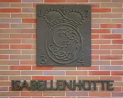 Das Logo der Isabellenhütte trägt in den vier Ecken die Zeichen „J734“, was für das Jahr 1734 steht, welches nicht das Gründungsjahr 1728 ist. Ursprünglich stammt es von einer Torverzierung, die an eine neben der Kupferhütte befindliche Vitriol-Siederei erinnert. In der Mitte des Zeichens befinden sich die Initialen „I. C. F. z. N.“ von Isabella Charlotte Fürstin zu Nassau.[6]