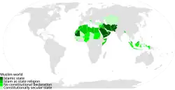 Viele gegenwärtige Staaten, die für sich in Anspruch nehmen, einen islamischen Staat zu verwirklichen, bezeichnen sich selbst als Islamische Republik. Eine spezifische islamische Staatsform gibt es allerdings nicht. In islamischen Republiken ist der Islam als Staatsreligion in der Verfassung verankert, und in der Gesetzgebung findet in Teilen oder als Ganzes die Scharia Anwendung – dies im Unterschied zu Staaten, in denen Muslime zwar die Mehrheit bilden und die von islamischer Kultur geprägt sind, aber gleichwohl unter säkular-nationalistischer Führung stehen. Durchgängig beachtet wird diese Unterscheidung nicht; so bezeichnet etwa die Organisation für Islamische Zusammenarbeit alle ihre Mitglieder als „islamische Staaten“.[2]