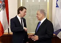 Die Regierungsbeteiligung der von SS-Veteranen gegründete rechtspopulistischen FPÖ unter Jörg Haider, dem Antisemitismus und eine Nähe zum Rechtsextremismus vorgeworfen wurde, sorgte 2000 für einen europaweiten Skandal. Die neue Regierung wurde von zahlreichen Ländern boykottiert und Israel zog für drei Jahre seinen Gesandten aus Wien ab.[4] Die FPÖ kehrte 2017 unter der Regierung von Sebastian Kurz in die Regierung zurück, gab sich jedoch als proisraelisch. Bundeskanzler Kurz besuchte Jerusalem 2018 und traf sich mit Benjamin Netanjahu. Er kündigte an, den Kampf gegen den Antisemitismus zum Fokus der EU-Ratspräsidentschaft Österreichs zu machen und wurde von Netanjahu bei dem Besuch als „wahrer Freund Israels und des jüdischen Volkes“ bezeichnete.[1] Auch nach dem Ende der Kanzlerschaft von Kurz blieben die Beziehungen zu Israel eng und 2022 wurde eine strategische Partnerschaft geschlossen.[5] Nach dem Terrorangriff der Hamas auf Israel 2023 stellte Israel jegliche Hilfe für Palästina ein.[7] Bei einer Abstimmung über eine Resolution in der UN-Generalversammlung am 27. Oktober 2023, in der ein Waffenstillstand im Krieg Israels gegen die Hamals in Gaza gefordert wurde, stimmte Österreich als einer von nur 14 Staaten dagegen, während sich z. B. Deutschland der Stimme enthielt.[1]