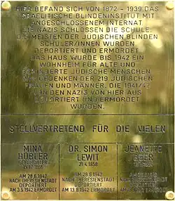 - ↑ BIZEPS-INFO: Gedenktafel für ehemaliges Israelitisches Blindeninstitut. Oktober 2002