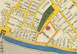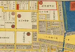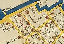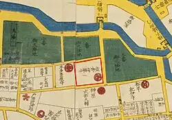 - ↑ a b c d Ausschnitt aus den Stadtteilkarten „Surugadai“, „Bancho“, „Soto-Sakurada“ und „Shitaya“ von ca. 1850.