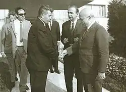 In der Nachkriegszeit entwickelten sich die Beziehungen unter veränderten Vorzeichen weiter. Italien gehörte zum westlichen Lager (NATO-Gründungsmitglied 1949), während Rumänien 1955 dem Warschauer Pakt des Ostblocks beitrat. Trotz ideologischer Gegensätze blieben die diplomatischen Kontakte bestehen; 1964 vereinbarten Bukarest und Rom die Aufwertung ihrer gegenseitigen Vertretungen auf Botschaftsebene.[2] In den späten 1960er- und 1970er-Jahren verfolgte Rumäniens kommunistische Führung unter Nicolae Ceaușescu einen eigenständigeren außenpolitischen Kurs, der eine Annäherung an westeuropäische Staaten einschloss. Sichtbares Zeichen dafür war 1973 der erste Staatsbesuch eines rumänischen Staatsoberhaupts in Italien, als Ceaușescu in Rom von Staatspräsident Giovanni Leone und Papst Paul VI. empfangen wurde.[6] In den 1980er-Jahren allerdings geriet das Ceaușescu-Regime international in Isolation aufgrund seiner innenpolitischen Menschenrechtsverstöße; dies belastete auch das Verhältnis zu Italien, das sich kritischer gegenüber Bukarest zeigte. Die rumänische Revolution von 1989 ebnete schließlich den Weg für einen Neuanfang in den Beziehungen.