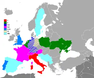 Italien spielte viermal, 1980 im Spiel um Platz 3 gegen den bereits entthronten, 2012 in der Vorrunde sowie im Finale gegen den Titelverteidiger, der seinen Titel als erster erfolgreich verteidigte und damit gegen den späteren Europameister sowie 2016 im Achtelfinale, in dem die Italiener den Titelverteidiger aus dem Turnier warfen. Gegen den späteren Europameister spielte Italien zudem 1996 und 2024 (in der Vorrunde), 2000 (im Finale) und 2008 (im Viertelfinale). 2000, 2012 und 2016 scheiterte Italien jeweils am amtierenden Weltmeister (Frankreich, Spanien bzw. Deutschland). Bei allen anderen Teilnahmen, bei denen Italien nicht Europameister wurde, kam der Weltmeister aus Südamerika (1980, 1988, 1996 und 2024) oder Italien war selber Weltmeister (2008).
