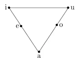 - [e]: Die Zunge ist nicht ganz so hoch wie beim [i] und die Zungenspitze berührt die Unterzähne. Die Lippen sind weniger gespreizt und der Mund ist weiter geöffnet als beim [i]. Beispiel: mela – [ˈmeːla].
