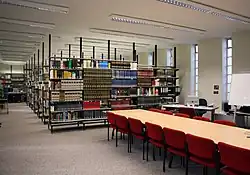Das Innere des Institutsgebäudes birgt im Erdgeschoss ein großes Foyer mit Treppenaufgang, den lang gestreckten Bibliotheksraum, Lese- oder Unterrichtssaal sowie eine Anzahl Büroräume, die über Korridore erreichbar sind. Die Wände sind weiß getüncht und dienen im Foyer und in den Gängen wechselnden Ausstellungen. Die Architektur wiederholt sich im Obergeschoss, wobei der dortige große Raum ein mit kompletter Bühnentechnik ausgestattetes, etwa 250 Personen fassendes Theater ist.