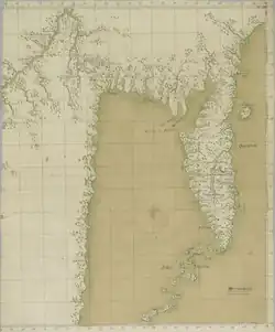 Teil der Karte Jewreinows und Luschins mit dem Ochotskischen Meer und Kamtschatka (1722)