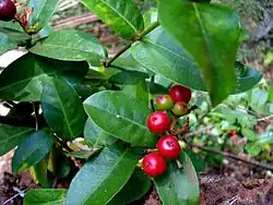 Die kugeligen Steinfrüchte sind von den haltbaren Kelchblättern umhüllt. Die bei Reife roten Steinfrüchte enthalten zwei plankonvexe Steinkerne mit je einem Samen.