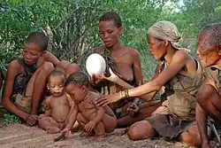 - ↑ Zur Diskussion um die Entstehung der Lebensweise der San siehe Später, S. (2004): Die Expeditionen der Familie Marshall: eine Untersuchung zur ethnologischen Erforschung der Nyae Nyae !Kung. Münster 2004, S. 26–28.