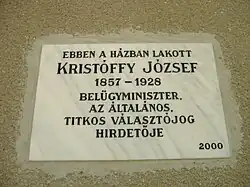 - ↑ a b c Benda: Kristóffy, József. In: Österreichisches Biographisches Lexikon 1815–1950 (ÖBL). Band 4, Verlag der Österreichischen Akademie der Wissenschaften, Wien 1969, S. 278.