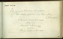 Stammbucheintrag Podmaniczkys als Student in Göttingen 1778